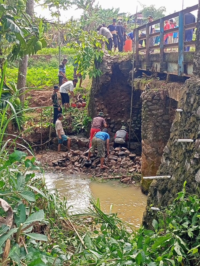 Tak kunjung diperbaiki oleh Pemerintah Daerah, warga dan pengusaha patungan perbaiki jembatan