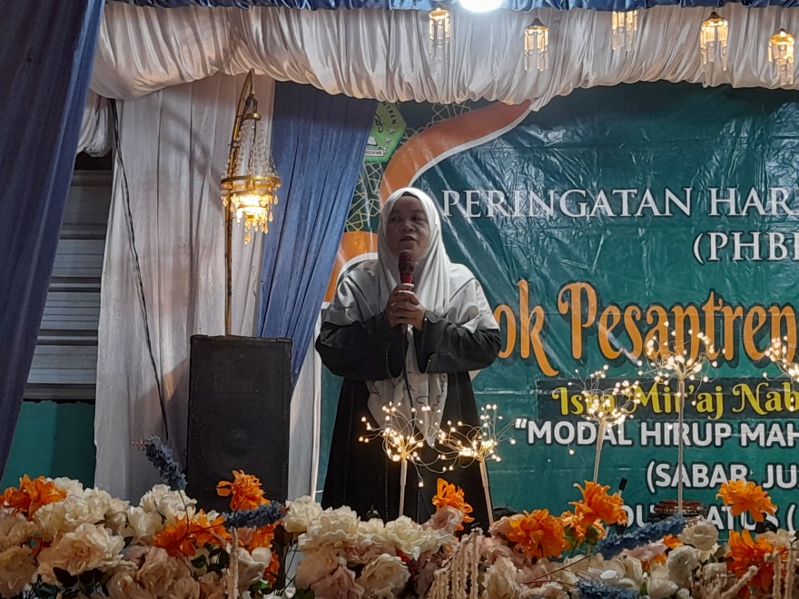 Pimpinan ponpes Nurul Ridwan ustadzah Umi siti habibah dalam sambutannya menyampaikan rasa terima kasih kepada semua warga RW.02 Kp. Cipetir dan orang tua wali murid yang telah membantu sehingga terselenggaranya acra isro mi,raj ini.
